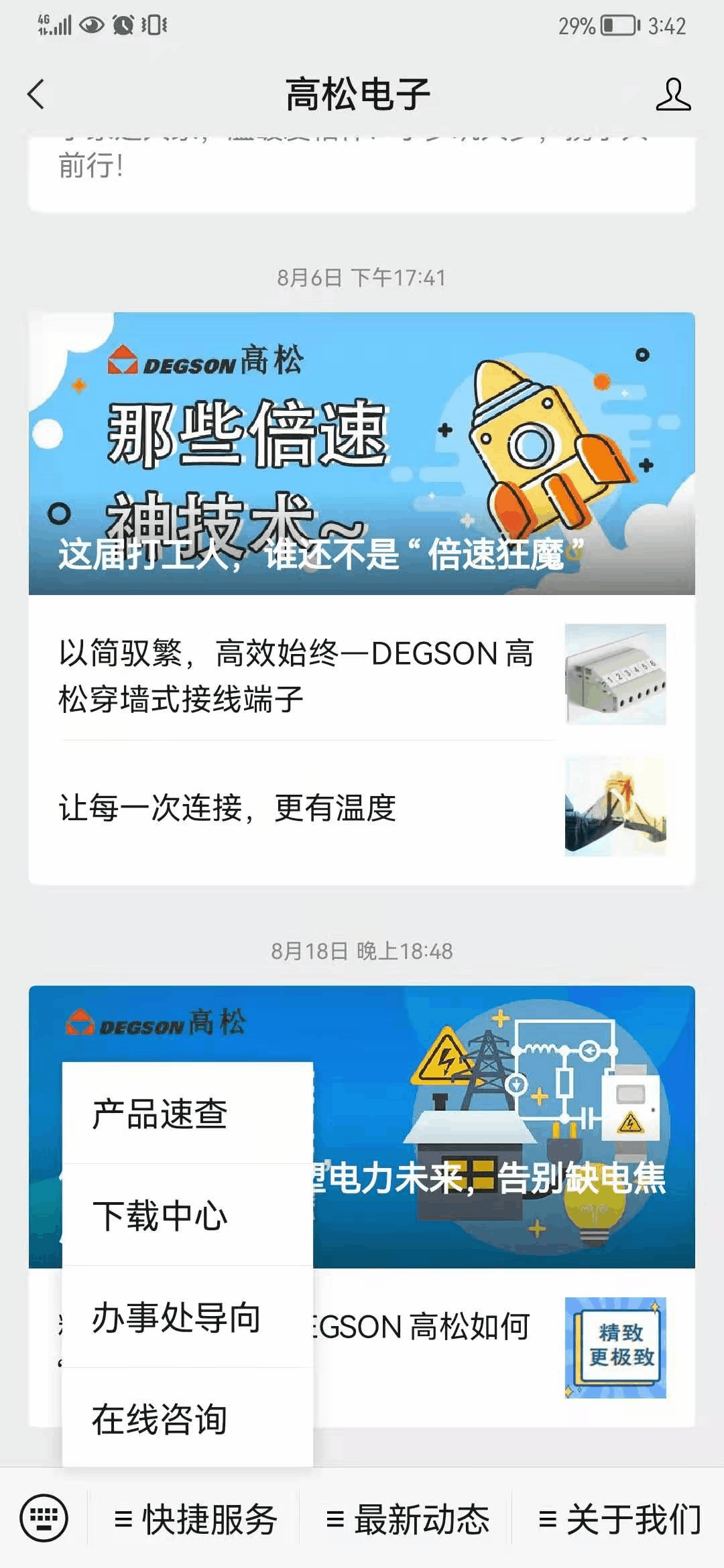 為更全面、深入地服務(wù)行業(yè)用戶,提升品牌格調(diào),充分發(fā)揮新媒體的宣傳作用,近期,DEGSON高松對微信公眾號進行了全面升級。以微信公眾號為網(wǎng)絡(luò)中心,設(shè)置更多人性化功能,基于對連接需求的悉心洞察,利用微信公眾號的傳播力和符合用戶使用習(xí)慣的服務(wù)功能,形成線上完整的服務(wù)體系。